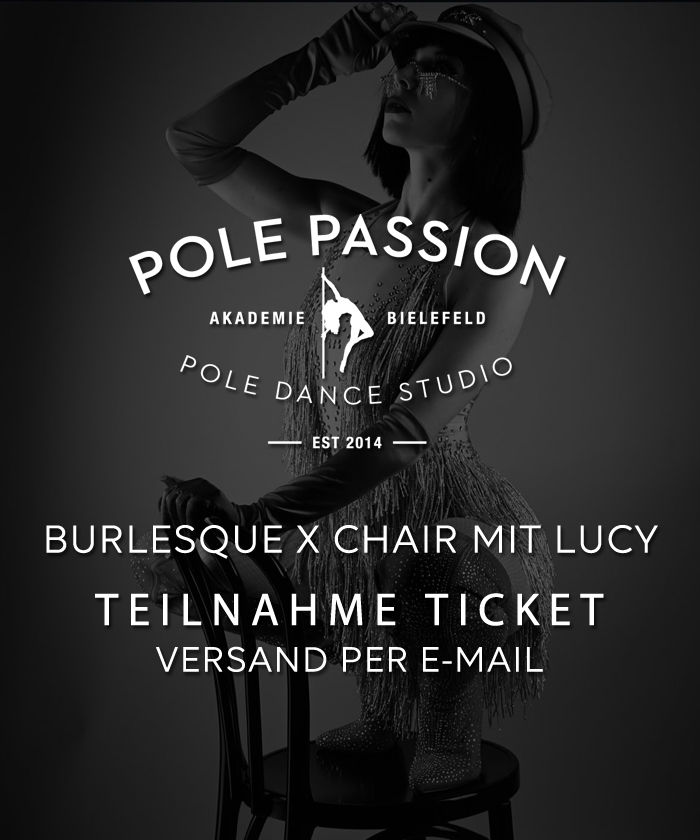 Beschreibung: Eine sensual chair dance Choreografie zu authentischer Burlesque Musik und sich dabei fühlen wie im Film? Das ist Burlesque x Chair. Wir erlernen eine all Level Chair dance Choreografie, in der wir tänzerisch und kreativ den Stuhl in unsere Burlesque Performance integrieren und verführerisch Handschuhe ausziehen. Alle Arten von Heels sind erlaubt, aber kein Muss. Requisiten stelle ich.